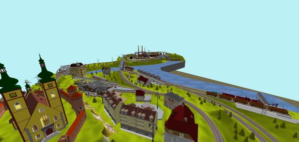 Der Gleisplan ist in einer Rechteck-Form gebaut und verfügt über ein Hauptgleis- und Nebengleis, das durch einen Bahnhof führt. Im Untergrund befindet sich ein Schattenbahnhof, der Platz für 4 lange Züge bietet. Oberhalb befinden sich weitere Güter- oder Abstellgleise.